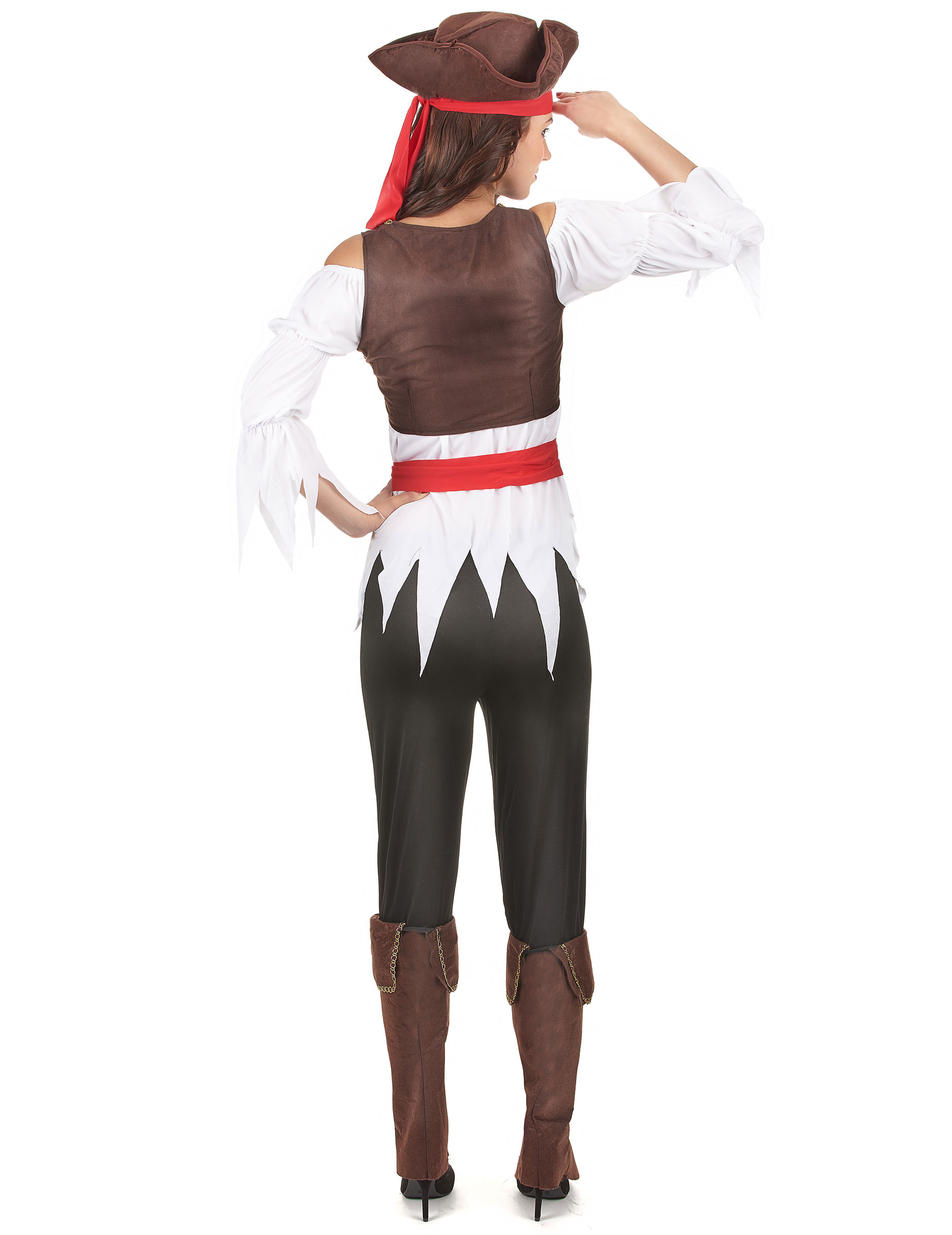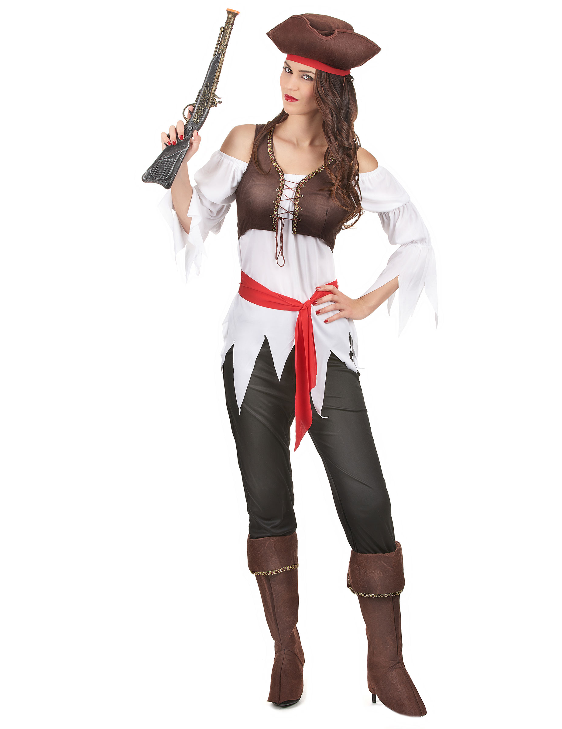 Ce déguisement de pirate femme se compose d’un haut, d’un pantalon, d’un gilet, d’une ceinture, d’un bandeau, d’un chapeau et de couvre-bottes (Pistolet non inclus).