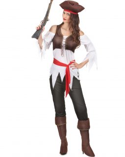 Ce déguisement de pirate tatoué pour garçon contient une veste, un t-shirt, des manches, un pantalon avec sur-bottes et un bandeau (épée, bouc et perruque non inclus). Le t-shirt est rayé noir et blanc, et peut être complété par la longue veste effet jean avec sa ceinture rouge incluse. Le pantalon, à la taille élastique, a des sur-bottes incluses qui peuvent être maintenues sous les chaussures pas un lien à scratch.
